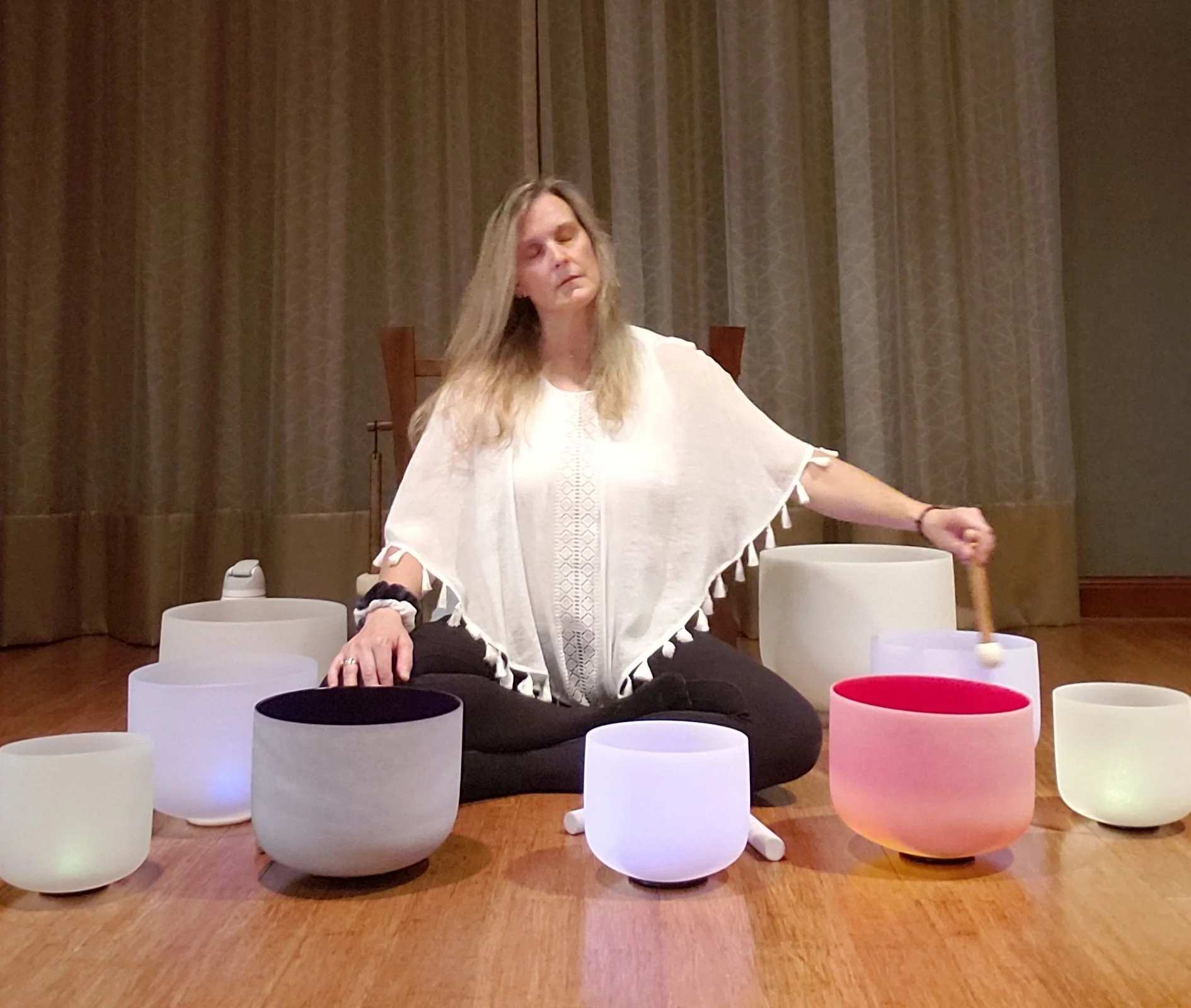 Carissa has accumulated 1,405 hours as a Certified Clinical Yoga Therapist, iRest Teacher, and Thai Bodyworks Therapist. She collaborates with numerous clients in Co-Meditation Counseling and conducts at least one Yoga Nidra and Sound Therapy workshop monthly. She has achieved the highest level of training in Yoga Therapy and iRest and is currently a Level 1 Thai Bodyworks Therapist. Her passion lies in working with rehabilitation patients recovering from surgery or terminal illnesses, as well as assisting with recovery from suicide attempts and prevention efforts. For surgery rehabilitation and recovery from life-threatening illnesses, she employs therapy tools such as Thai Bodywork adjustments in yoga pose therapy and Bio Tuning with Sound Bath Therapy. In her work with trauma-sensitive yoga or suicide recovery and prevention therapy, she utilizes tools like Co-Meditations and iRest Yoga Nidras. Carissa enjoys teaching iRest Yoga Nidra and Co-Meditations, sharing her enthusiasm through workshops throughout the greater Houston area, including Champions, CityCenter, Cinco Ranch, and Cypress.